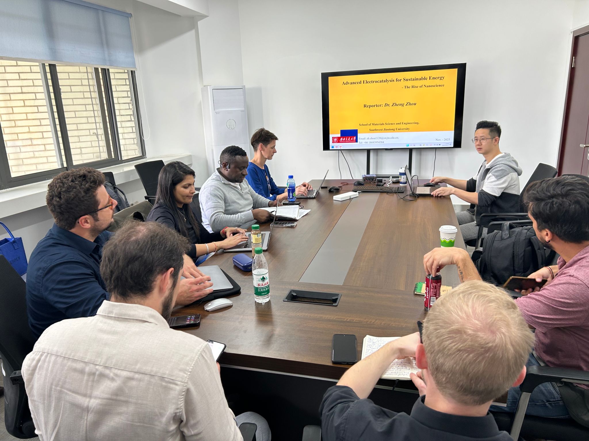 讲座共5场,包括:10月27日,周正副研究员,讲座题目:Nano-micro design of nano-metals for energy conversation electrocatalysis;10月30日田果副研究员,讲座题目:CO2 to liquid fuels;11月5日董盼盼副研究员,讲座题目:Rational Design of Composite Cathodes and Functional Electrolytes for High-Energy Lithium-Metal Batteries;11月5日唐关琦副研究员,讲座题目:A brief overview of perovskite solar cells;11月6日伍华丽副研究员,讲座题目:The future of carbon-based new energy。